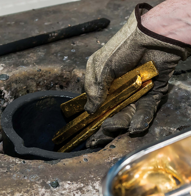 Depending on input, De L’or employs proprietary aqua regia, electrolytic and chlorination refining methodologies.